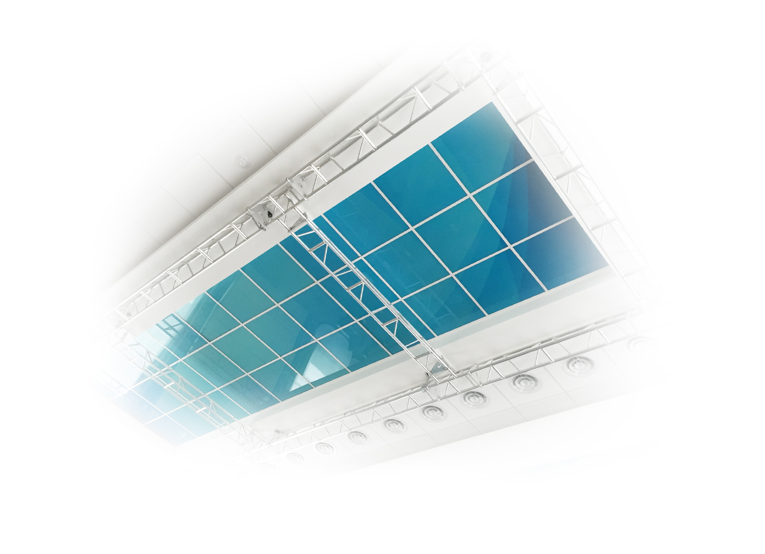 Изготавливаем как полностью стеклянные потолки, так и фальш-потолки, где стекло выступает в виде внешних накладных панелей, а также ленточные стеклянные потолки по периметру основного пространства.
